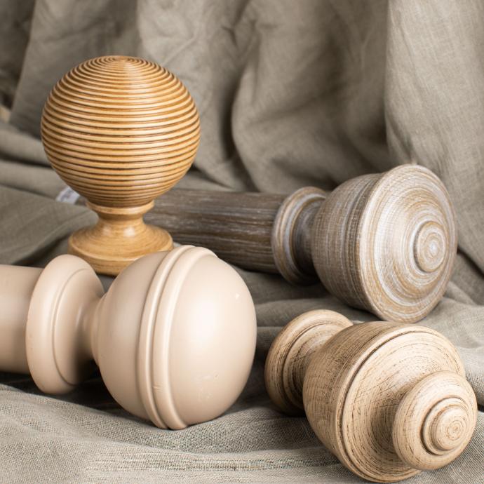 As the name implies, this authentic collection of wooden poles embraces rustic design using hand-sanded techniques that accentuate the natural wood grain. Inspired by French country farmhouses and rural English cottages, Rustica comes in multiple wood tones from light to dark. Finish with simple caps for a pared-back feel or decorative finials to complement property style.