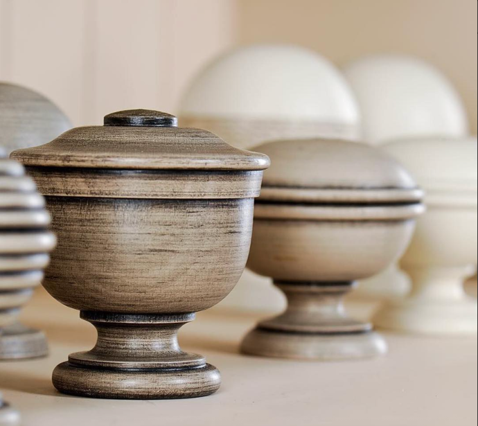 Embracing the sophisticated tones of cherrywood, mahogany and dark oak, choose from our traditional collection of premium wood-turned finials in a range of timeless classics.