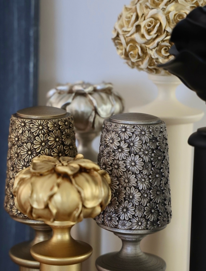Our floral finial collection brings the beauty of nature indoors with intricate botanical detailing perfect for romantic and traditional schemes.