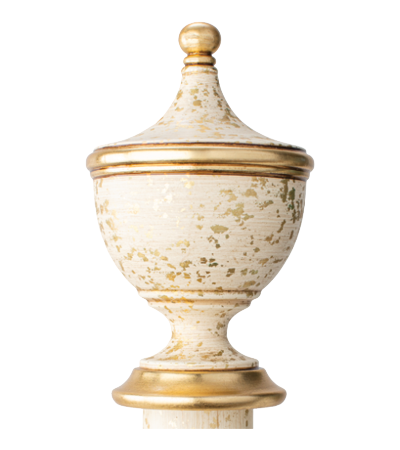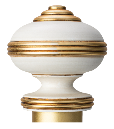 For warm traditional elegance choose Florentine cream finials with speckled gold leaf accents.