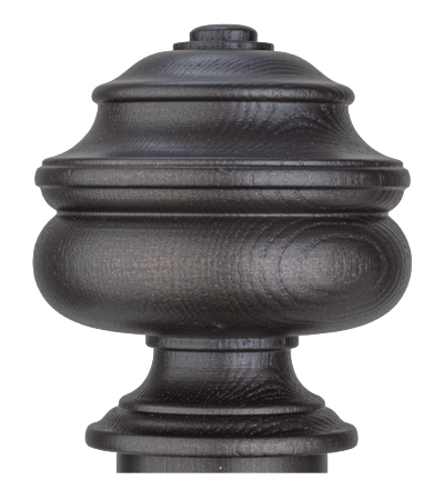 Classic wood-turned finials in rich dark oak, embrace the natural beauty of wood grain.