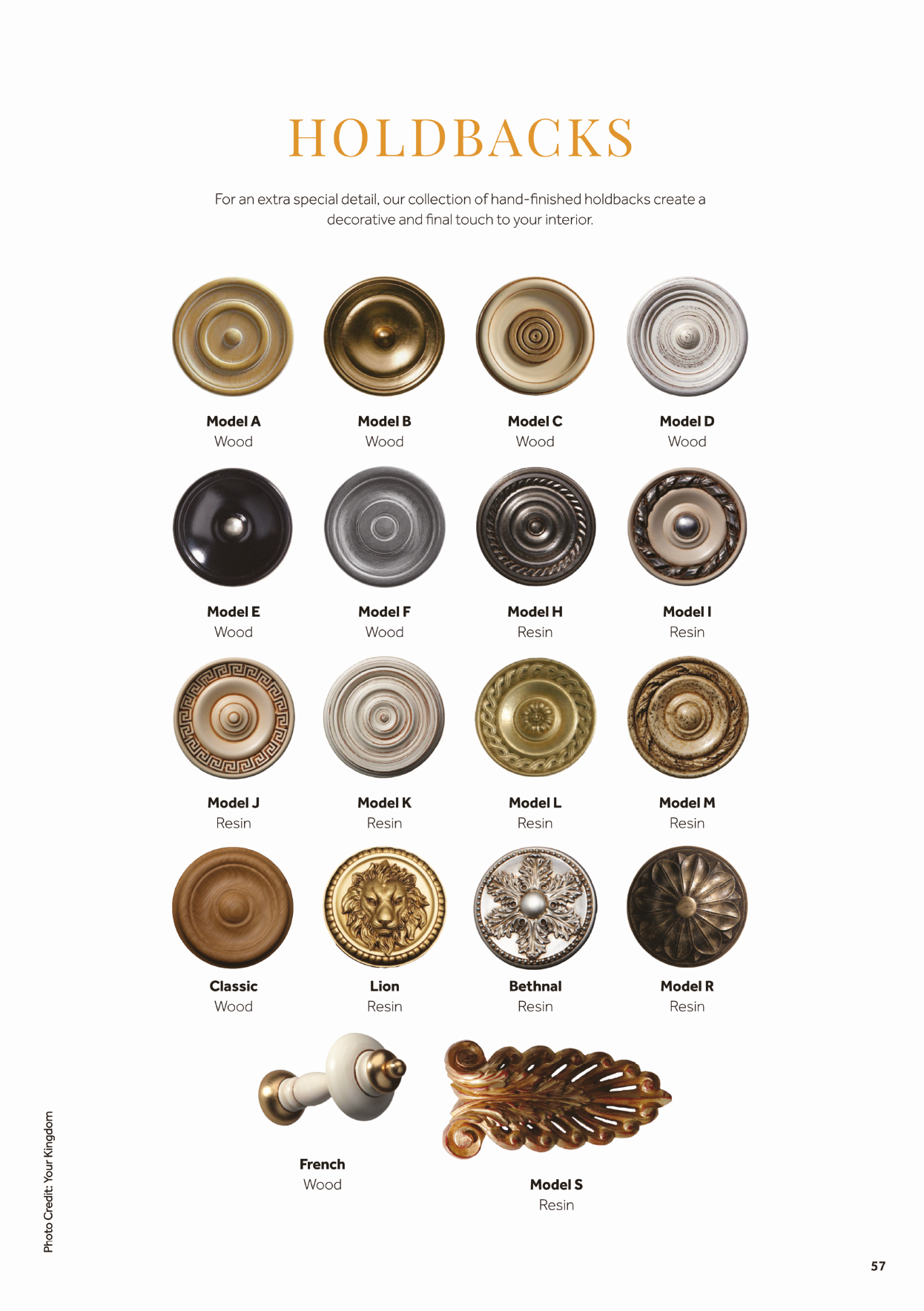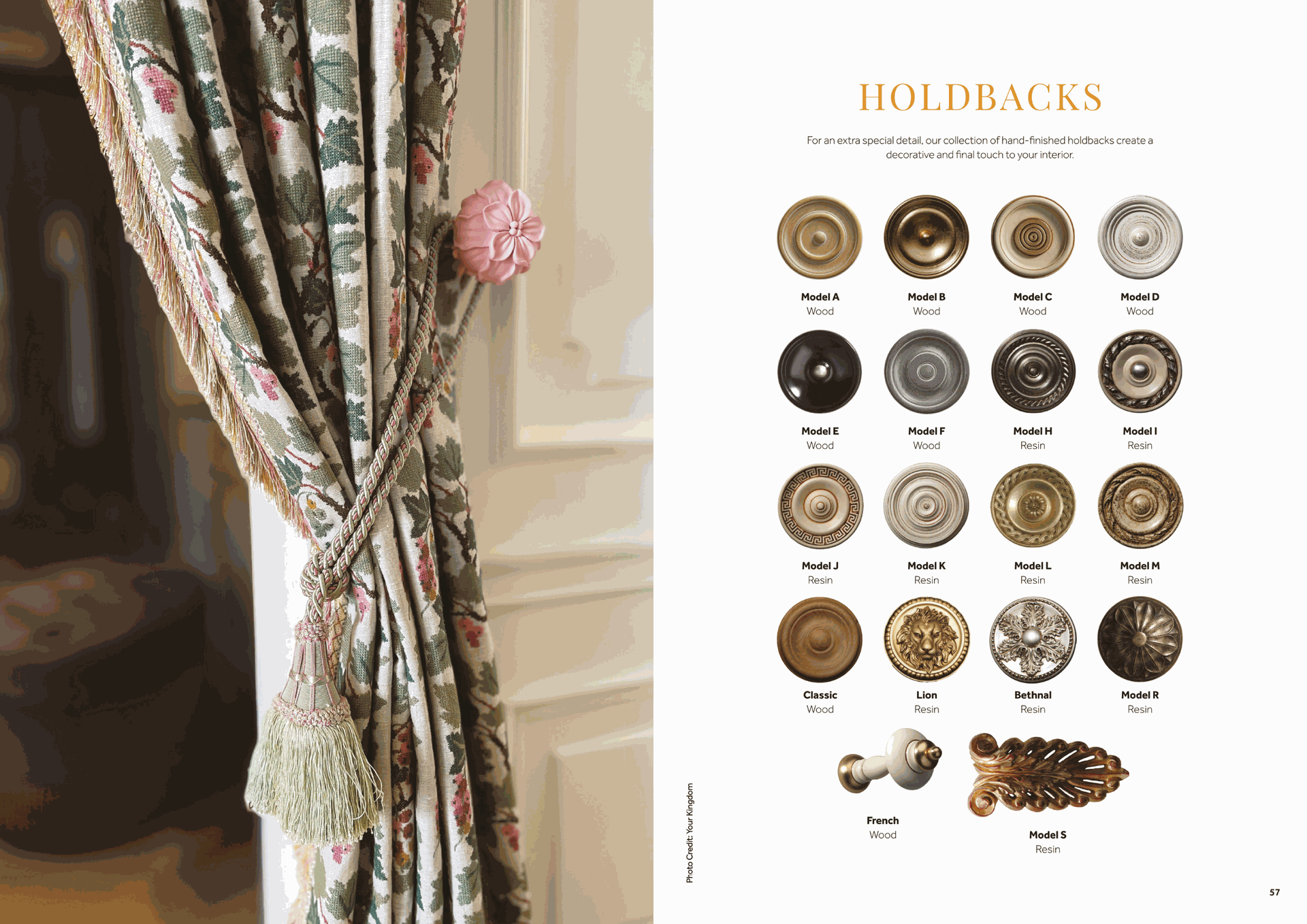 Explore our complete range of curtain holdback styles including black, white, gold, silver and heritage designs to complement your curtain poles.