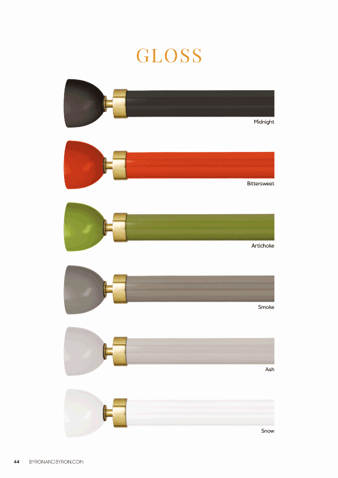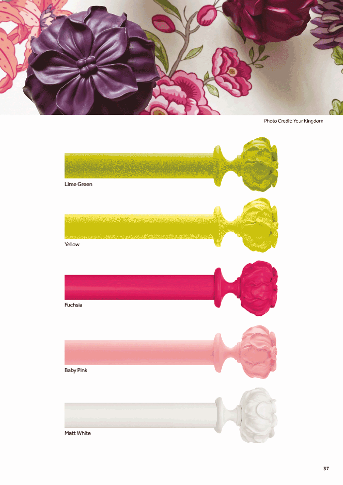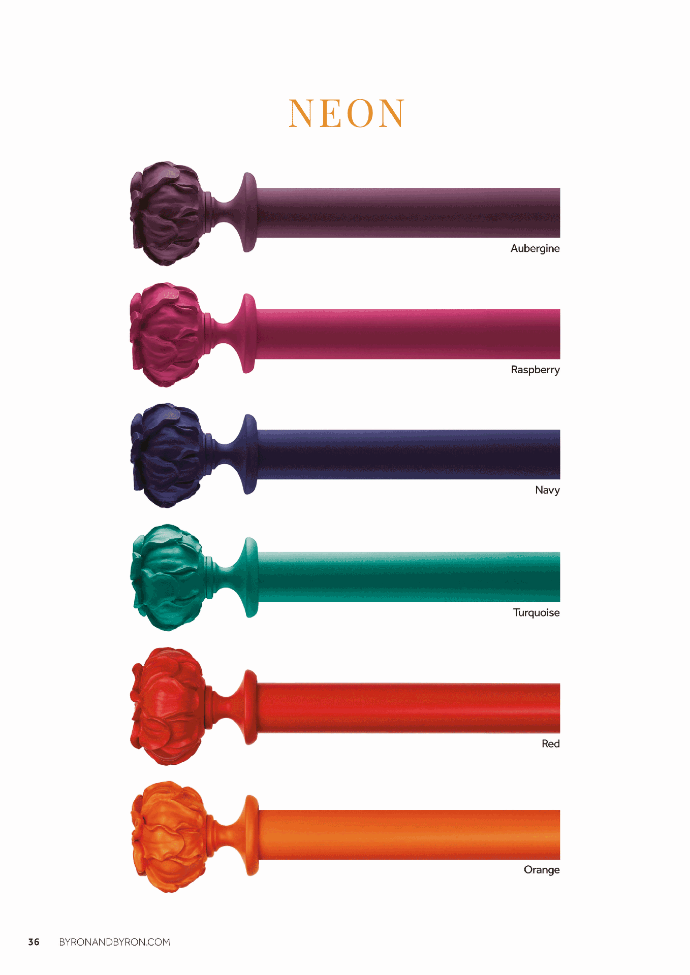 We embrace rich exotic colours of tropical climates to recreate vibrant blooms from sunshine yellow to deep aubergine. Discover our coloured curtain pole collection in pretty florals and high gloss wood for cutting-edge contemporary glamour.