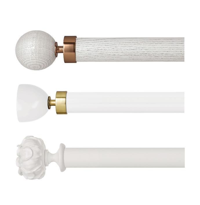 From flat matt paint to high gloss finishes, our white curtain poles are never boring! Alternatively, we offer white stained wood grain and off-white shades, perfect for coastal schemes.